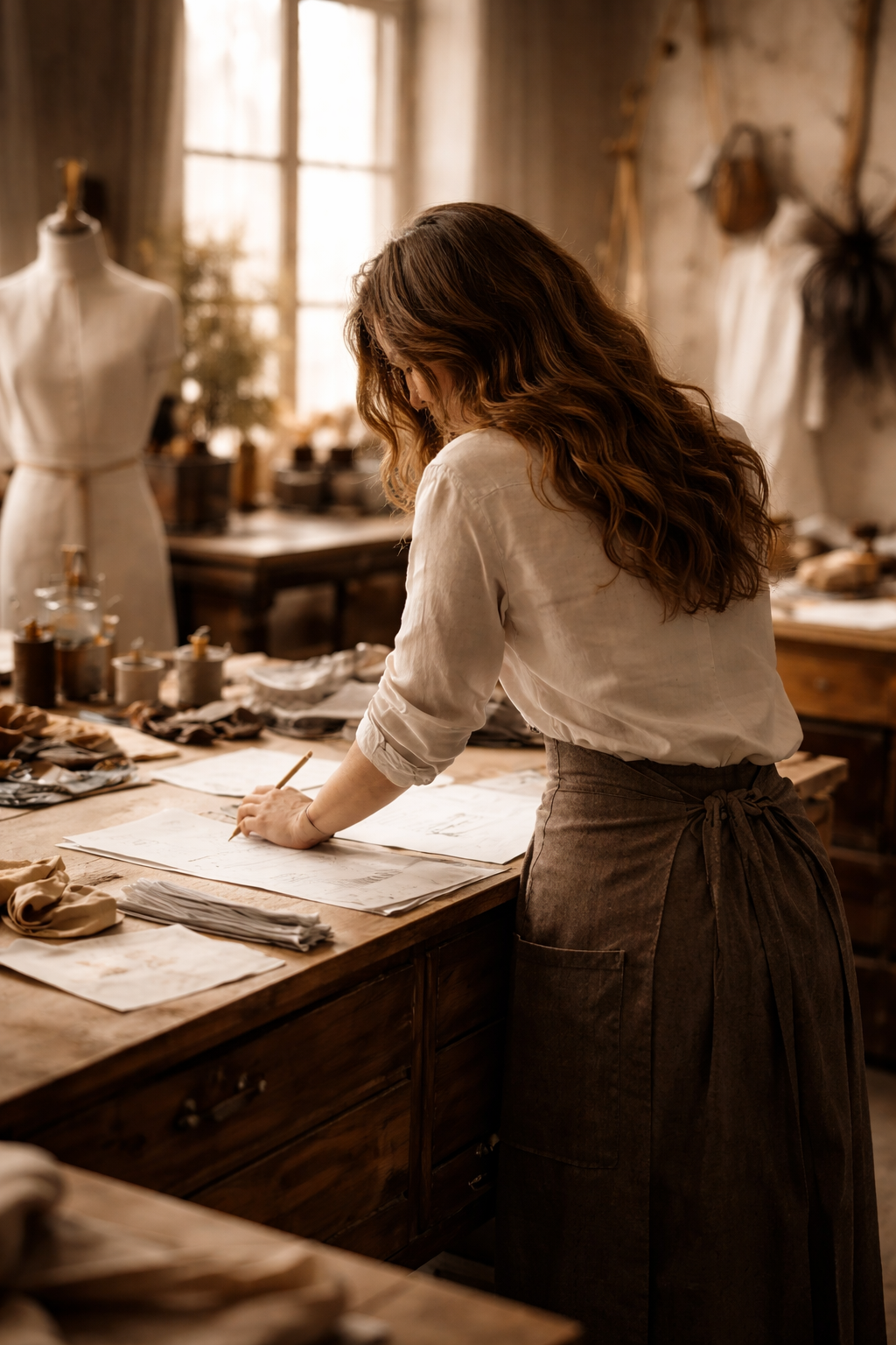 Chaque pièce est unique. Aucun patron, aucune coupe identique — seulement des créations pensées pour une personne, une seule.